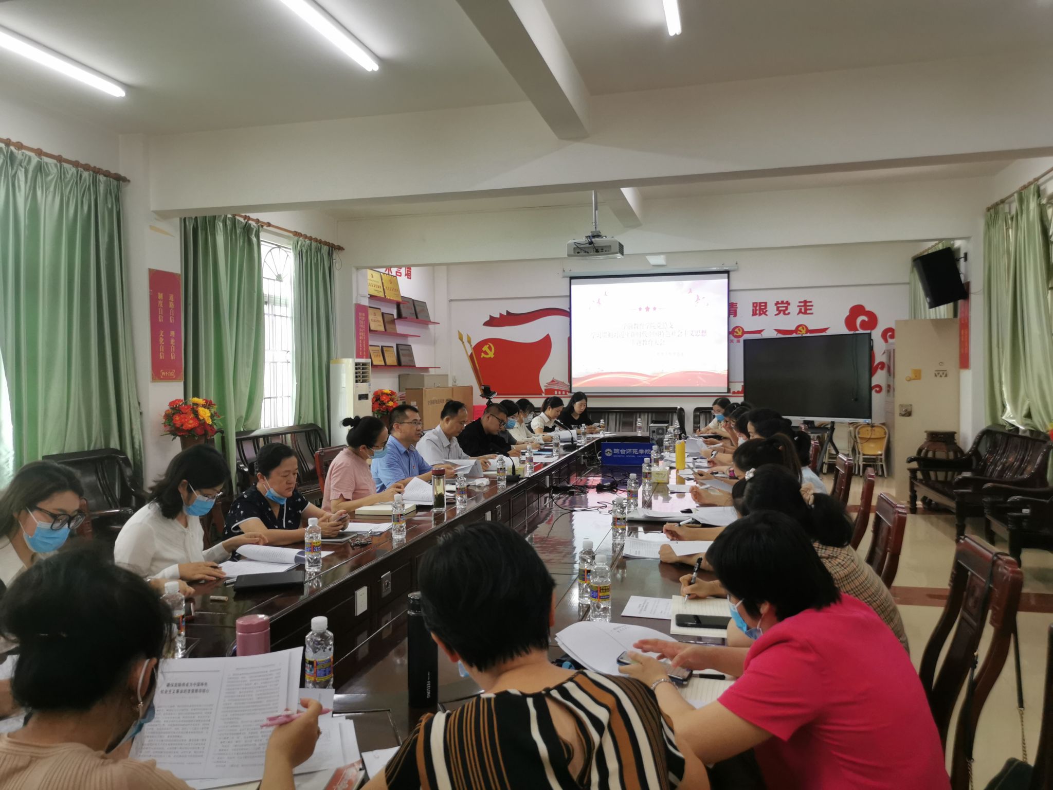 会上,学前教育学院党总支颁布了《学前教育学院学习贯彻习近平新时代中国特色社会主义思想主题教育实施方案》。随后,由学前教育学院党总支各支委领学习近平总书记系列重要讲话精神。