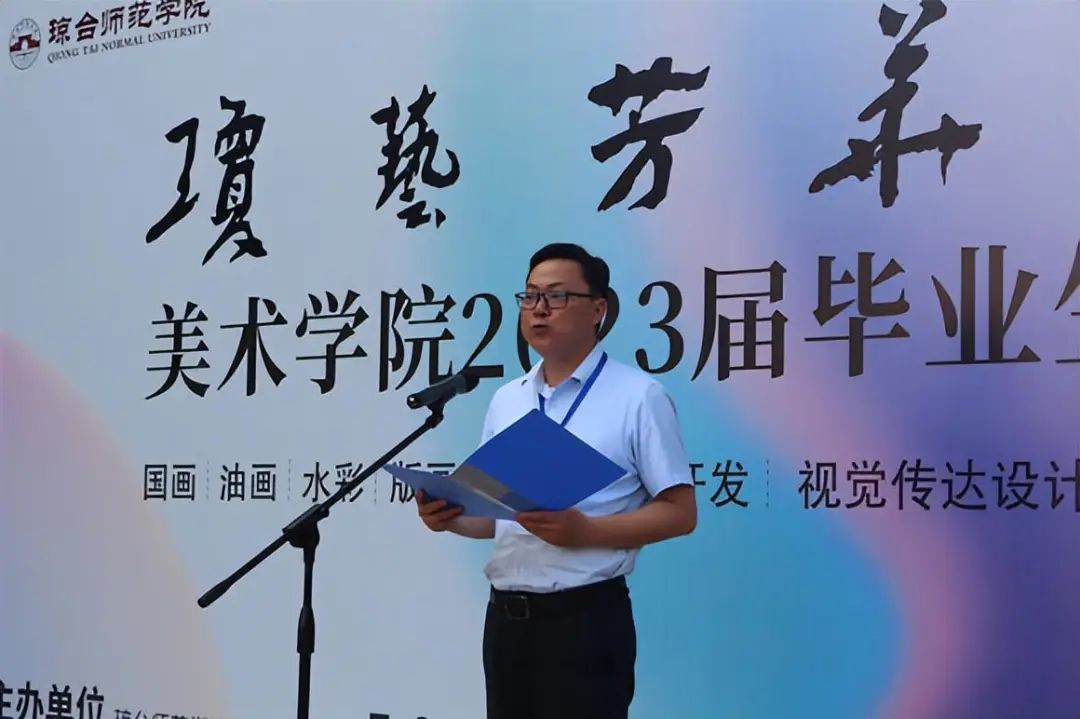 海南省文联副主席、省美协主席阮江华表示海南省美术家协会长期以来非常重视与海南各高校的携手合作,尤其是与琼台师范学院在合作共建中,培养了大量海南美术事业的后备力量,琼台美术学院师生创作的美术作品,多次入选国家级、省级展览,并屡屡获奖。琼台美术学院在美术专业人才培养,服务基础美术教育,椰苗美育品牌打造,挖掘、继承、创新、宣传海南独特的地域文化,海南自贸港精神文明建设等方面体现了高校担当。