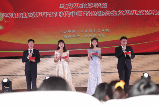 为深入推进学习贯彻习近平新时代中国特色社会主义思想主题教育,落实主题教育“学思想、强党性、重实践、建新功”的总要求,在奋进新征程中鼓舞青年以火热的激情展现青春担当、贡献青春力量。2023年6月4日19:00,我院在图书馆报告厅举行“同心向党,未来有我——马克思主义学院学习贯彻习近平新时代中国特色社会主义思想”文艺晚会,本次活动由马院主办,琼台思行社承办。马克思主义学院、校团委领导及教师代表出席晚会,马院全体学生及思行社全体成员参与。