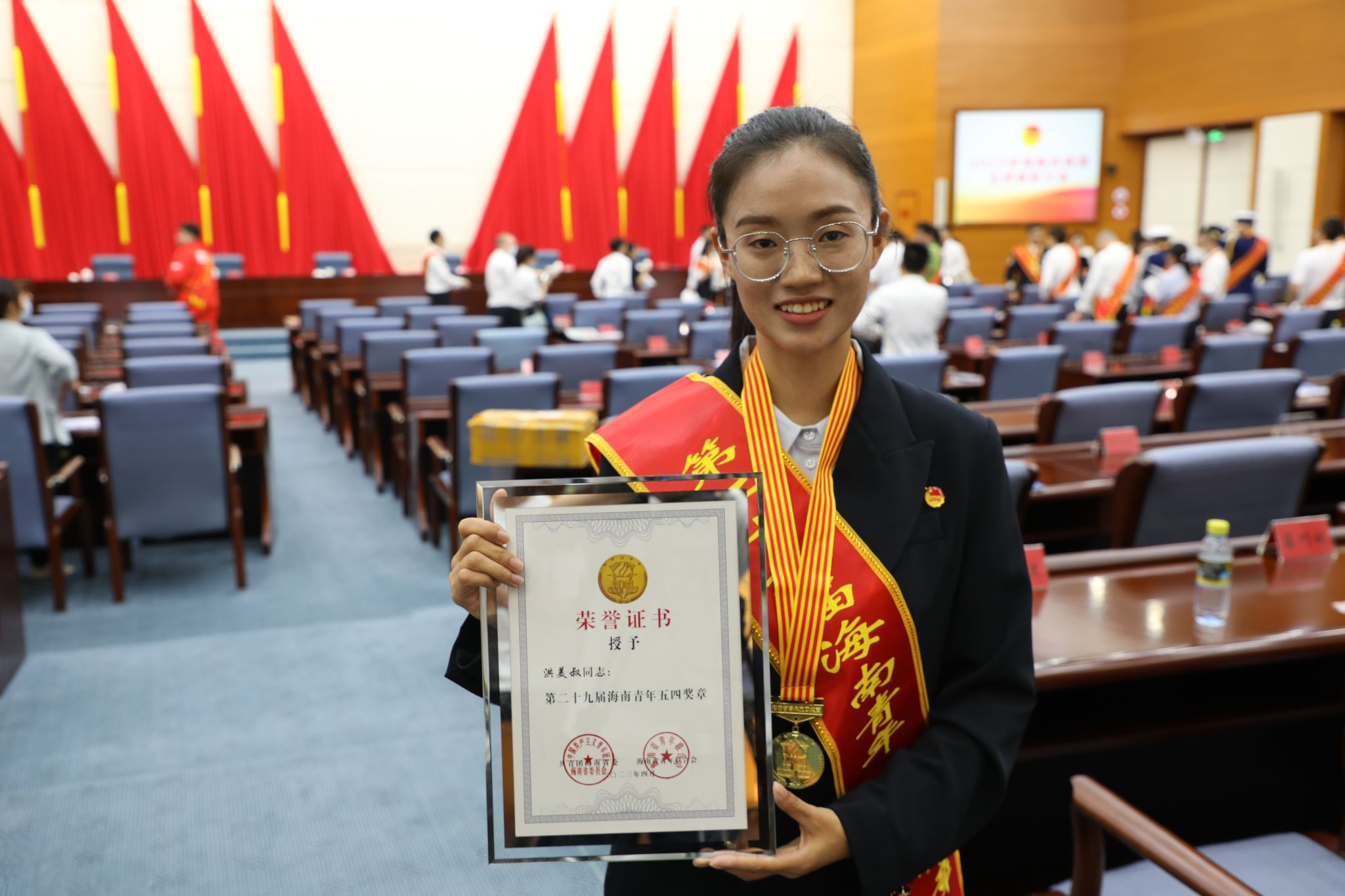 青年五四奖章,这份荣誉来之不易,是对她工作的鼓励和肯定,更是她坚定走下去的动力和鞭策。“初心易得,始终难守”海的故事,山的情怀让这个从大山走出的孩子找到了奔赴星辰大海的方向。站在海防前线瞭望祖国的辽阔海岸,洪美叔怀揣着琼台人振兴教育的职责和使命,扛起三沙人“爱国爱岛,乐守天涯”的斗志,与学校老师一起撑起了永兴学校的教育事业。她像一扇窗,为孩子们打开了外面的世界;她也像一片云,为一颗颗种子茁壮成长带来了微风雨露;她更像一棵树,一棵站立在海塘边的抗风桐,用平凡的身躯构筑了一片绿荫。她说,“祖国南海神圣不可侵犯,这里的渔民和驻岛工作人员,守护着他们所爱的家乡,而我们要守护好他们的孩子。”就像她最爱的那首歌里唱的一样:抗风桐 天边的树,痴情爱恋脚下土地,我多像你;抗风桐 心中的歌,乐守天涯生机勃勃,你多像我……